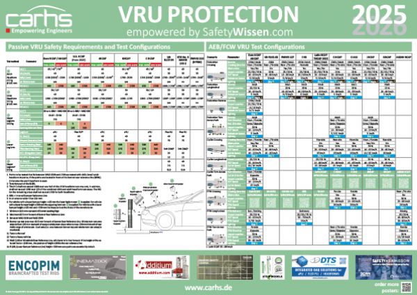 The SafetyWissen poster offers you a quick overview of vulnerable road user protection requirements. Get quick facts about worldwide regulations and consumer tests: ECE, GTR, Euro NCAP, C-NCAP, JNCAP and many more, all at a glance.